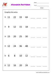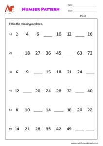 Print all our free worksheets to complete the pattern by following the regularity. Different types of patterns are also discussed. Download and practice. More than 70 worksheets available.