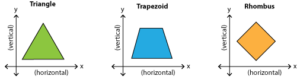 A few 2-D shapes to name are square, rectangle, heart, star, rhombus, trapezoid . In detail, you will learn the properties of all 2-D shapes. Properties describes the sides, angles, vertices, diagonals and more. A combination of worksheets and activities here makes learning much interactive. Try them here